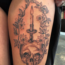 Chelsea moved to Portland 10 years ago from California. She has been an artist for as long as she can remember. Before tattooing she focused on drawing, painting, and printmaking. Chelsea enjoys tattooing black and grey imagery of all subjects. In her spare time, she spends time with her family and watching movies.